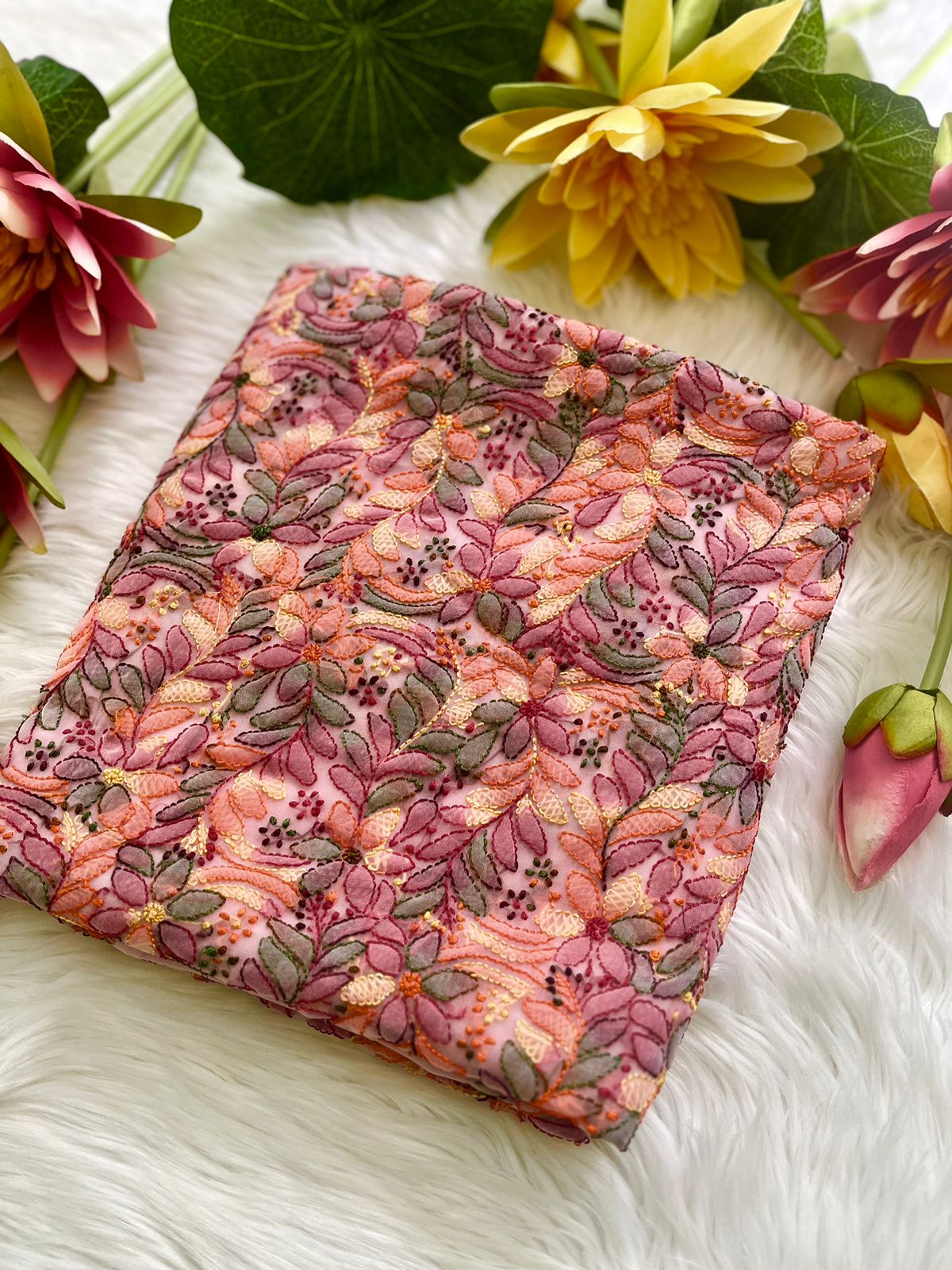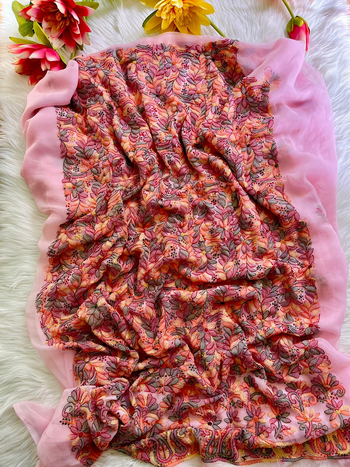 đ€©Unstitched Georgette 3-piece multi colour suit kurti shalwar & Dupatta with Full Sleeves features intricate Resham thread embroideryđ€©