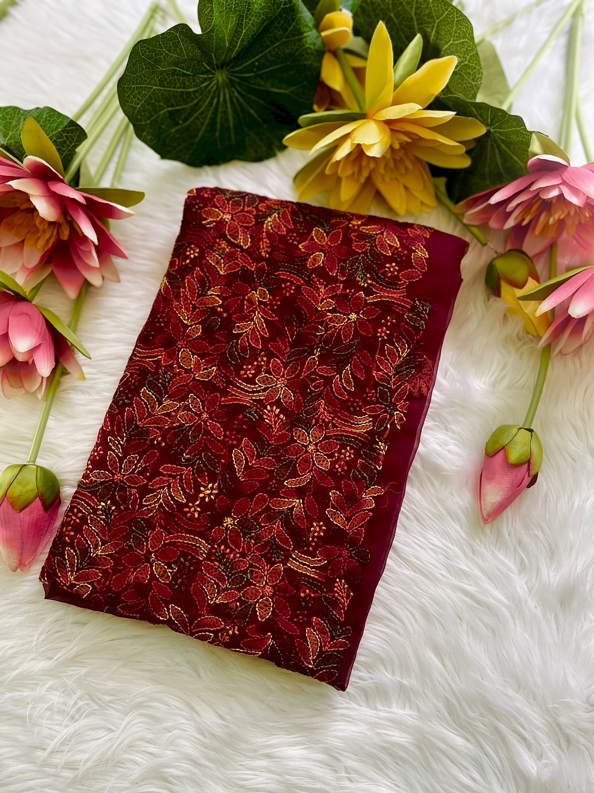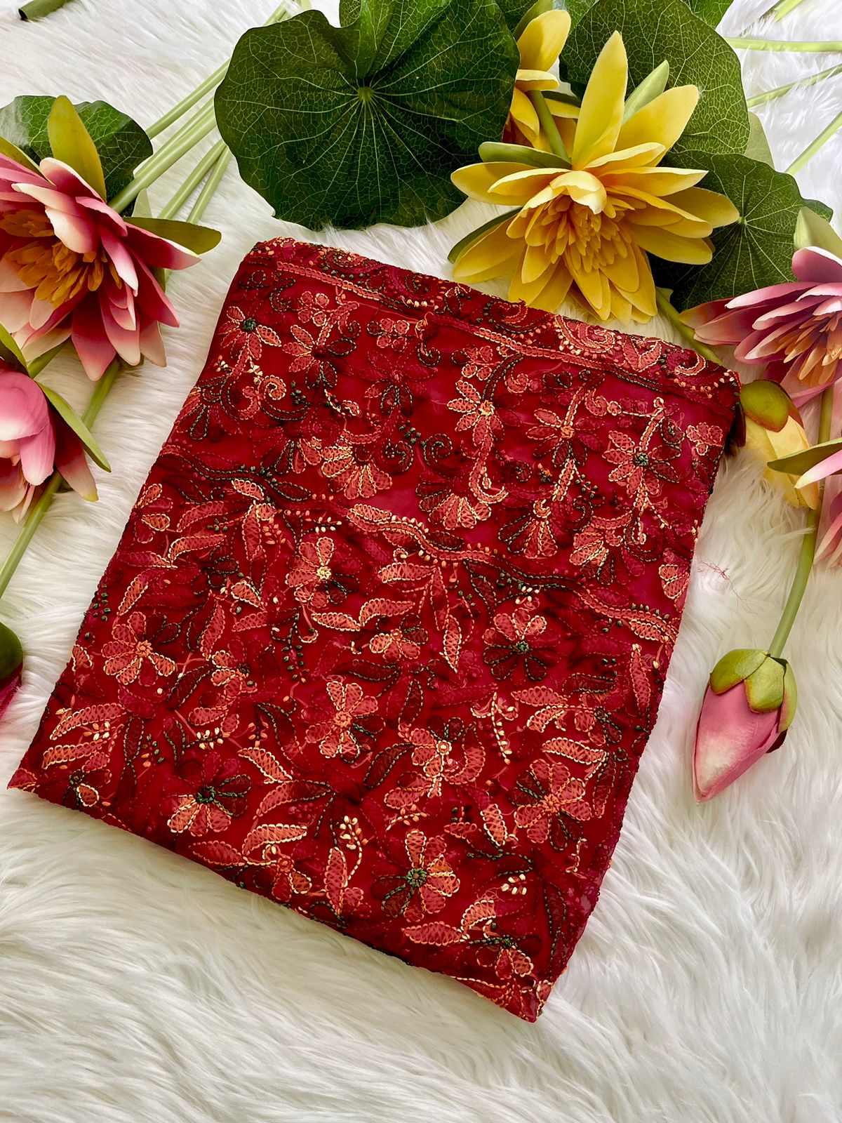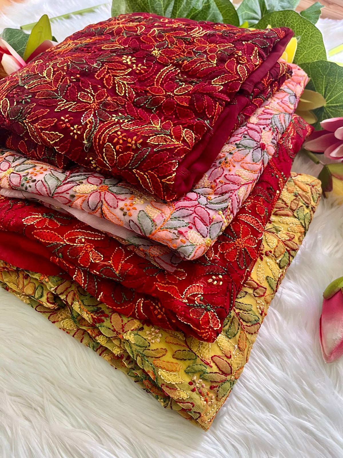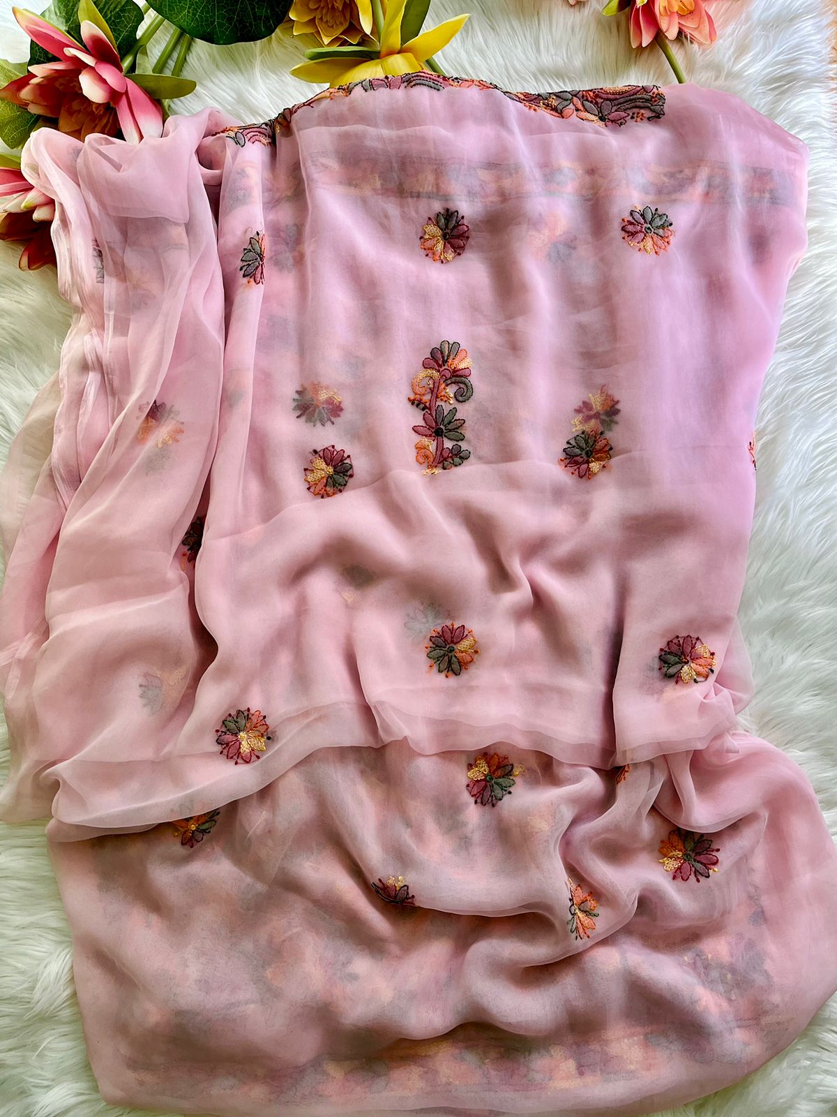 â„Elevate your traditional wardrobe with this stunning collection of Georgette Chikan Kari Unstitched 3pcs suit with Resham thread work, adorned with intricate Phanda and Bakhiya embroidery Front & Back. These suits feature a perfect blend of elegance, craftsmanship, and versatility, offering you a rich cultural experience through luxurious hand-embroidered designsâ„